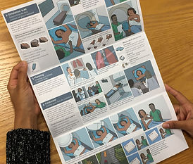 After synthesizing the insights we collected, we begin to explore the design the tool including different ways to draw visual narratives, organize the content and design the format of the tool. After deciding the frames of visual narratives and content we want to put in the tool, we combine them together to see how the images and text can fit each other and serve the conversation between patients and physicians better. We do several rounds of iteration to refine the tool.