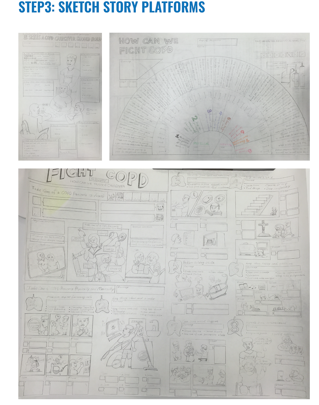 To help my insights and ideas prosper and in the client's environment, I gave a poster (story platform) to my client to take away and persuade their employees to buy in. I sketched three story platform ideas and I finally picked up one of them to continue.