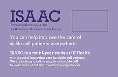 Many Chicago adolescents and adults with sickle cell disease experience severe episodic and chronic pain, progressive organ damage, frequent hospitalizations and re-hospitalizations, fragmented care and alarmingly high mortality. Despite the heavy toll in human suffering and related disruption to daily life, relatively few resources are devoted improving the lives of people with this condition. ISAAC is designed to improve clinical care and patient outcomes by designing, testing, and implementing a multi-level model to support longitudinal care and improve outcomes for individuals with SCD that takes into account the specific needs and resources of the Chicago area.